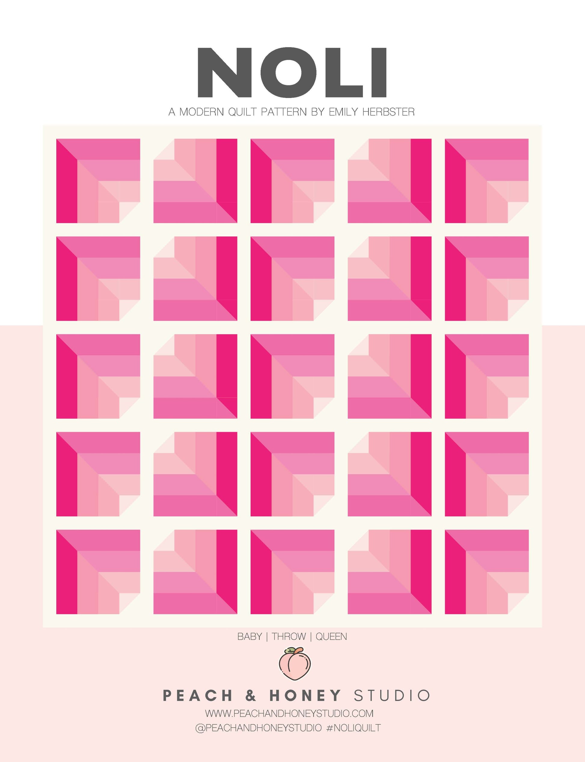 This pattern is for personal use only. Please do not copy, resell, or redistribute this quilt pattern. You may sell quilts using the Noli quilt pattern on a small independent scale. Please make sure to credit Peach and Honey Studio.