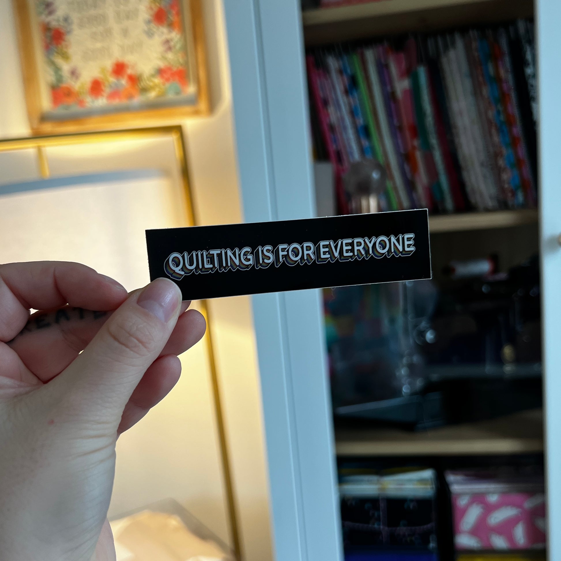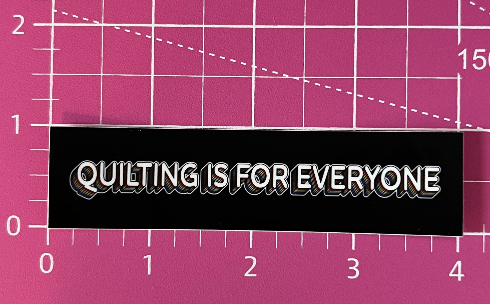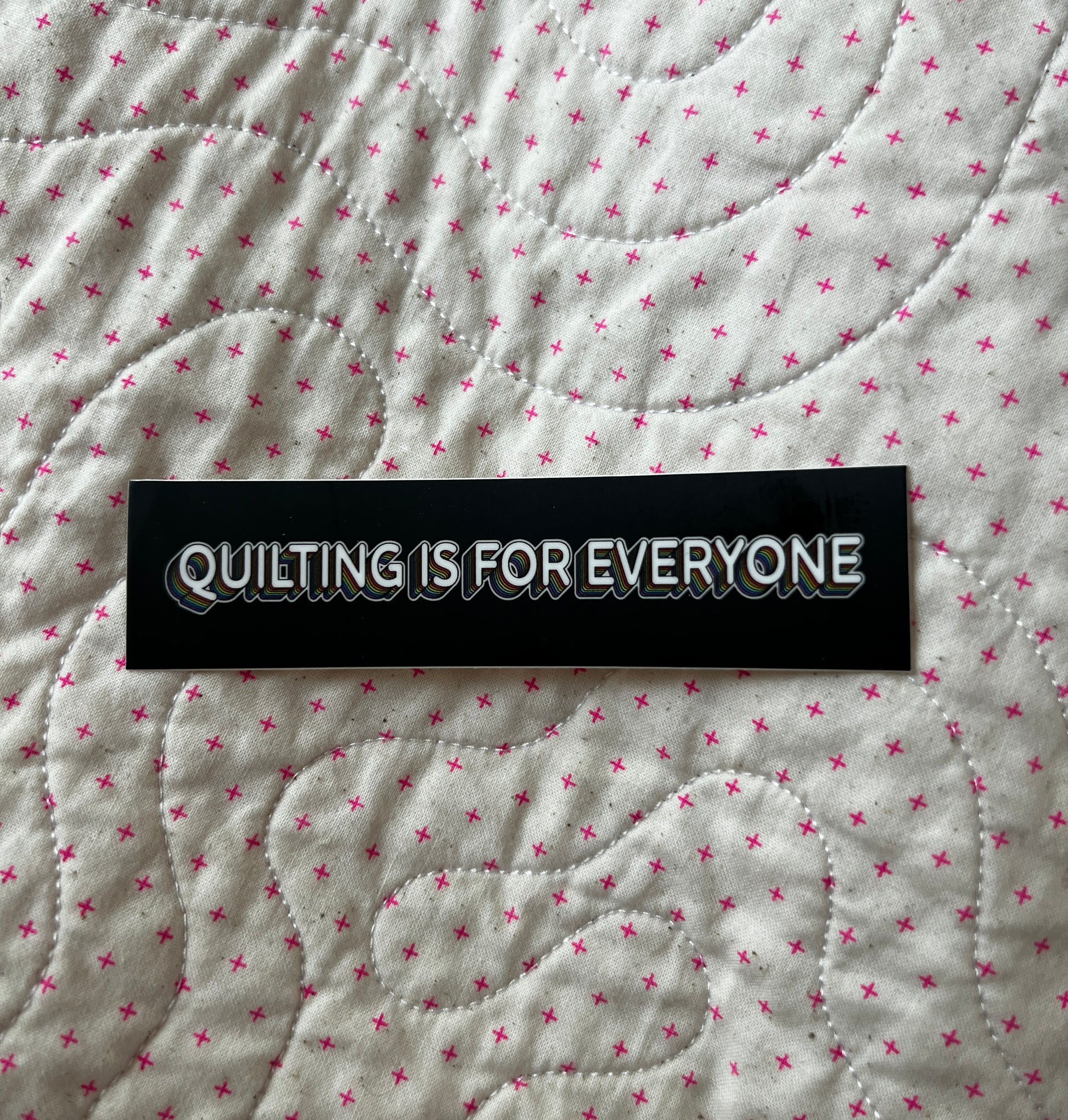 Show your quilting pride with this colorful "Quilting is for Everyone" sticker! Featuring black with rainbow accent colors, this sticker is a perfect reminder of the importance of love, acceptance and inclusivity. Let everyone know that quilting is for anyone and everyone, no matter what.